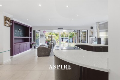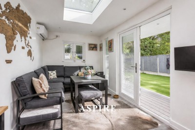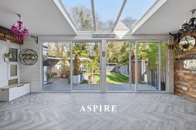 Externally, the property continues to impress. A newly installed porcelain-tiled driveway provides striking kerb appeal, while the rear garden has been thoughtfully designed for low-maintenance enjoyment, with artificial lawn, an outdoor kitchen and a hot tub (untested). The garden backs directly onto a peaceful nature reserve, ensuring privacy with no overlooking neighbours.