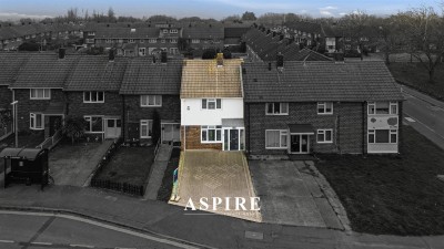 To the front of the property, a recently installed driveway provides off-street parking for two vehicles.