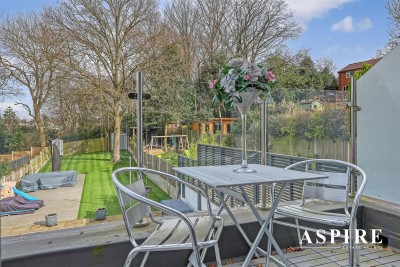 Rear Garden - 36.58m approx (120 approx) - Secluded garden backing a private wood coppice, paved patio area leading to extensive artificial lawn area, decking, outside lighting ,outside tap and power points,