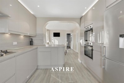 At the heart of the home is a sleek, contemporary kitchen, fitted with modern gloss units that create a clean, sophisticated look while providing ample storage and workspace. The bright and welcoming layout makes it an ideal space for both everyday living and entertaining.