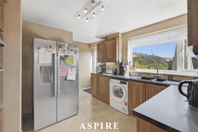 The ground floor benefits from a bright and spacious lounge to the front aspect, featuring parquet flooring and a feature fireplace with a gas coal flame fire and back boiler. To the rear, there is a separate dining room with double-glazed doors opening onto the garden, creating an ideal space for entertaining. The kitchen offers a range of eye and base level units with roll-top work surfaces, stainless steel sink with mixer taps, tiled flooring, and access to the rear garden.