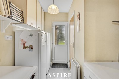 Utility Room - 2.51m x 2.26m (8'3" x 7'5") - A practical space with plumbing and space for a washing machine and dishwasher, along with space for freestanding fridge and freezer appliances. Additional eye level storage units are fitted and tiled effect laminate flooring continues through. A UPVC door provides access to the rear garden, while a further door leads to the ground floor WC.